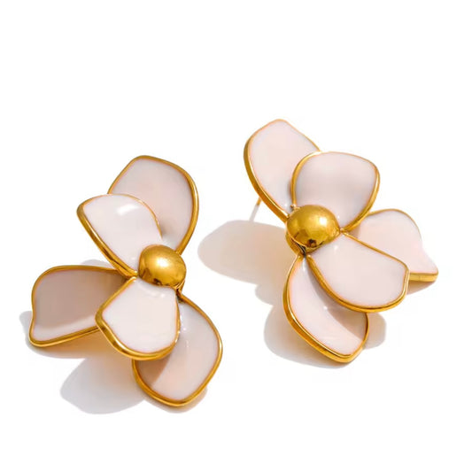 Statement Gold Iris Petal Flower Earrings - Holiday, Christmas & Party Jewellery