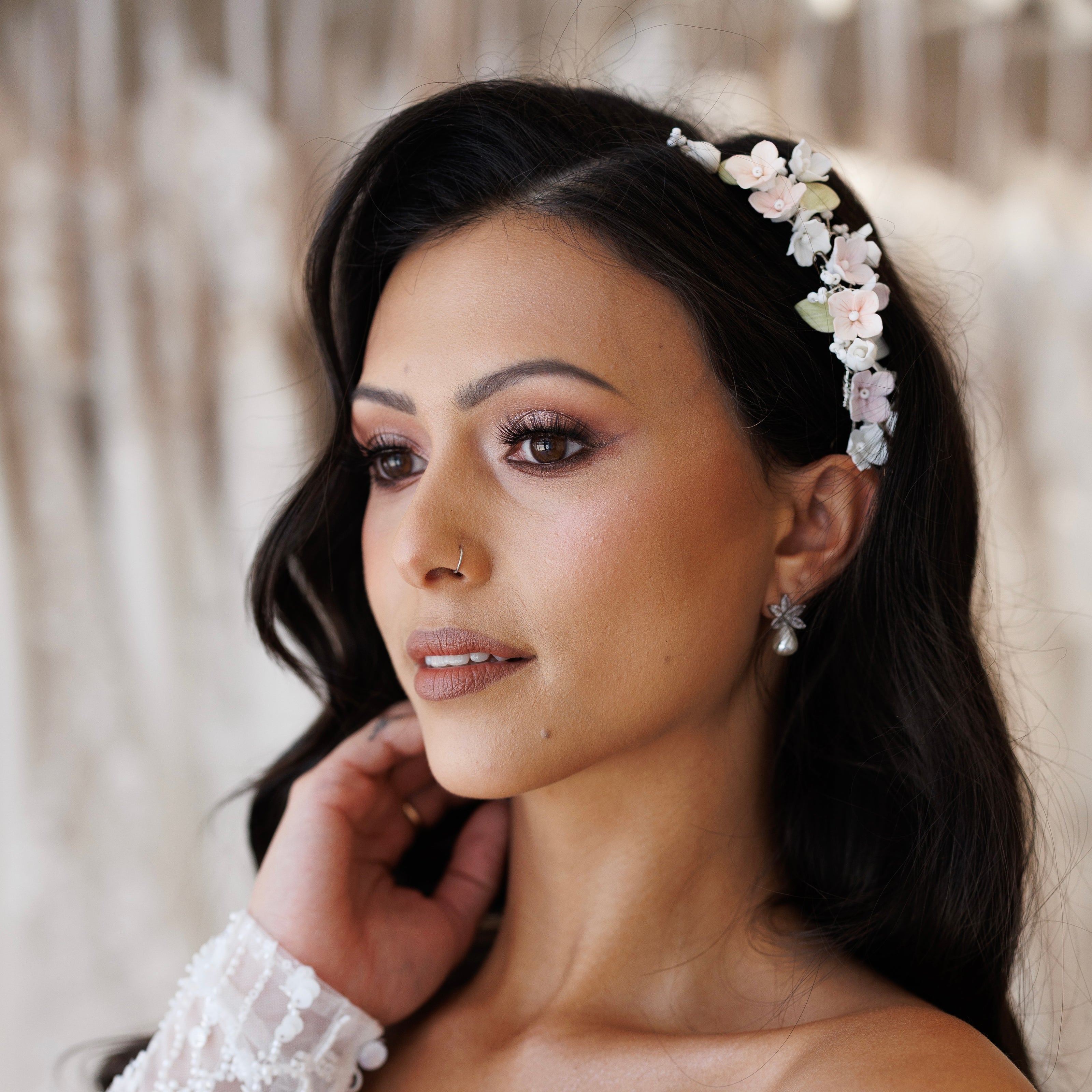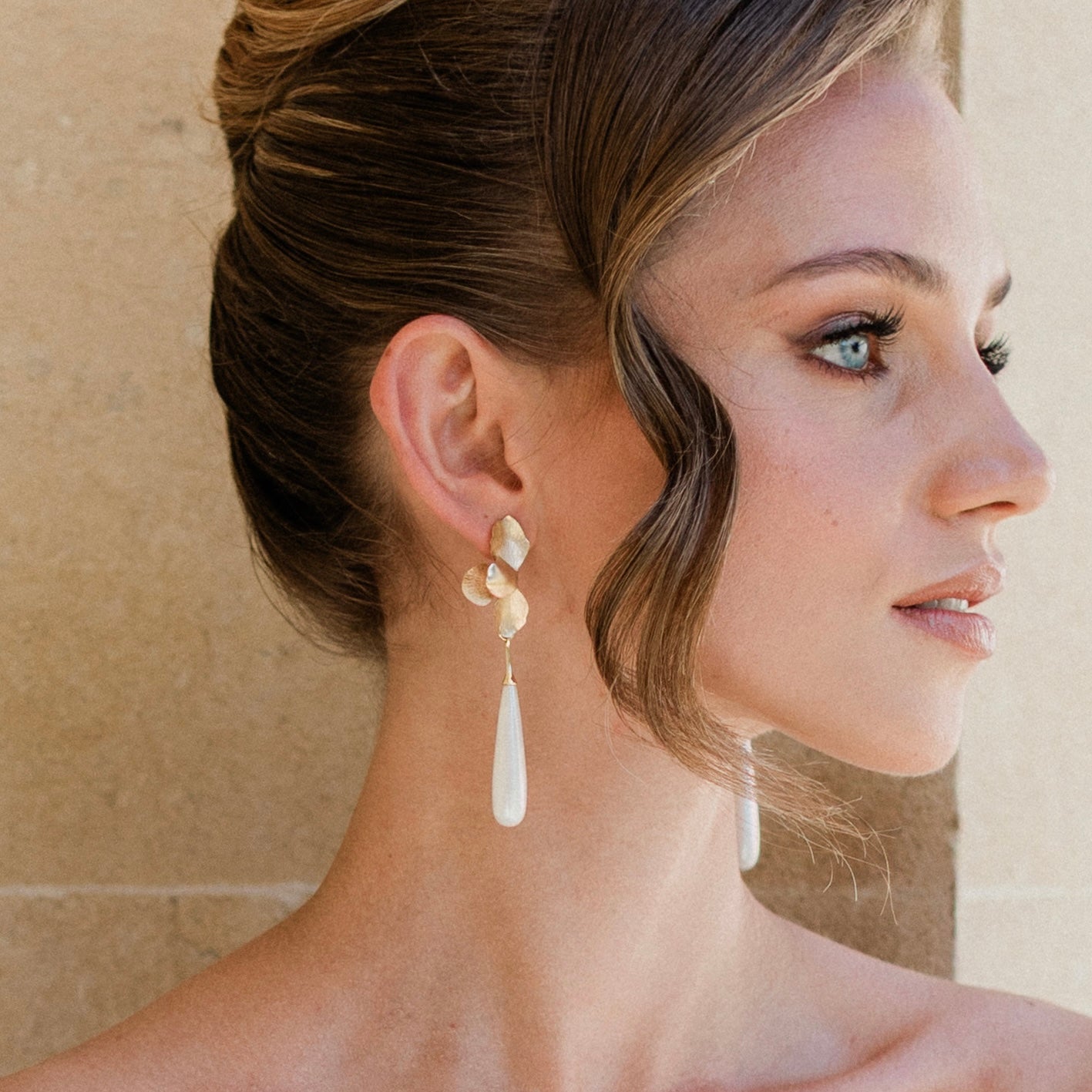 Explore the Porcelain Collection — featuring handcrafted porcelain bridal earrings, wedding hair...