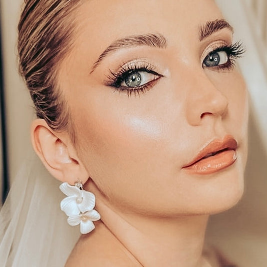 Large White Flower Statement Earrings - Bold Lightweight Style