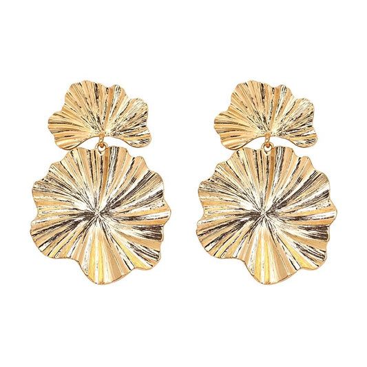 Statement Gold Iris Petal Flower Earrings - Holiday, Christmas & Party Jewellery