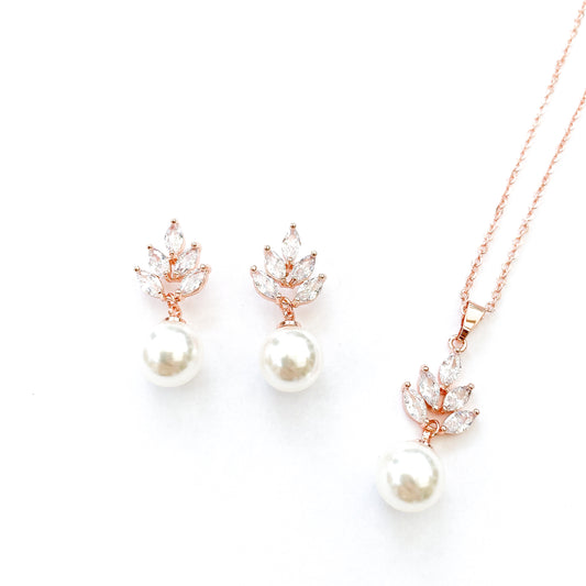 Serenity Rose Gold Flower & Pearl set