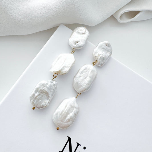 Rectangle Baroque Pearl Statement Bridal Earrings