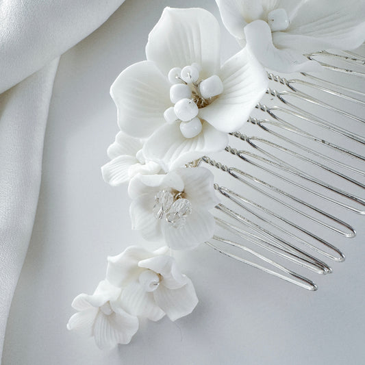 Marigold White Porcelain Flower Bridal Hair Comb Wedding Hair Accessory