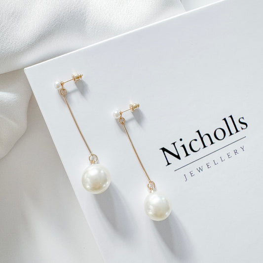 14k Gold Plated, Freshwater Pearl Drop Earrings – Gold Dainty Bridal & Christmas Jewellery | Elegant Handmade Gift for Her