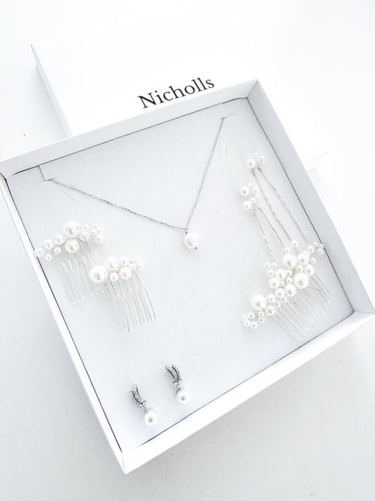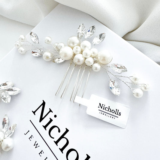 Pearl & Crystal Bridal Hair Comb with Matching Pins – Wedding Hair Accessory