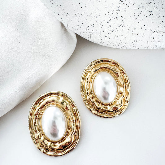 best sellerGold Folded Flower and Teardrop Pearl Earrings