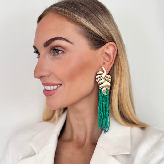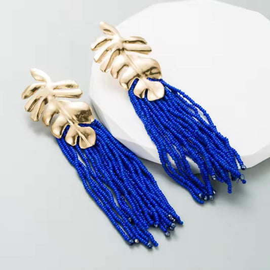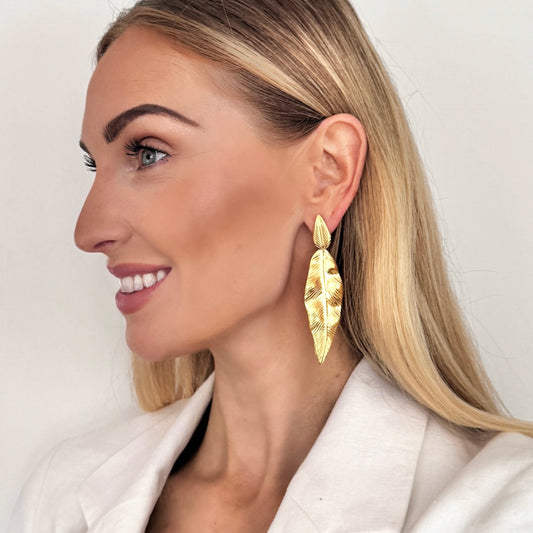 Gold Folded Flower and Long Elegant Pearl Earrings