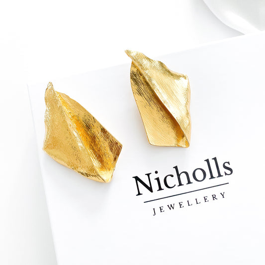 Statement Gold Iris Petal Flower Earrings - Holiday, Christmas & Party Jewellery