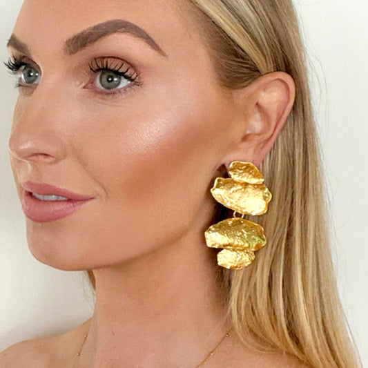 Statement Gold Iris Petal Flower Earrings - Holiday, Christmas & Party Jewellery