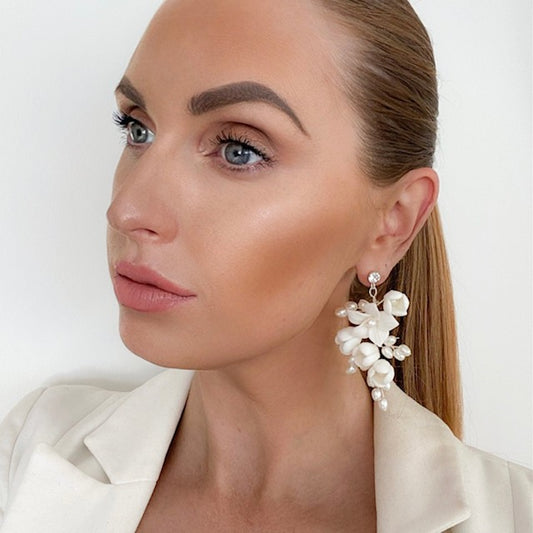 best sellerPorcelain Flower and Pearl Spray Drop Earrings