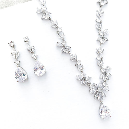 Porcelain Flower and Pearl Spray Earring and Comb Set