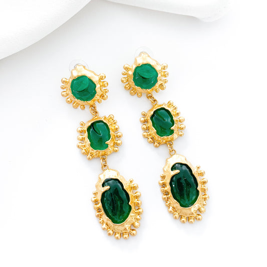 Vintage Green Long Drop Statement Earrings