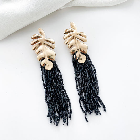 best sellerGold Leaf and Black Tassel Earrings