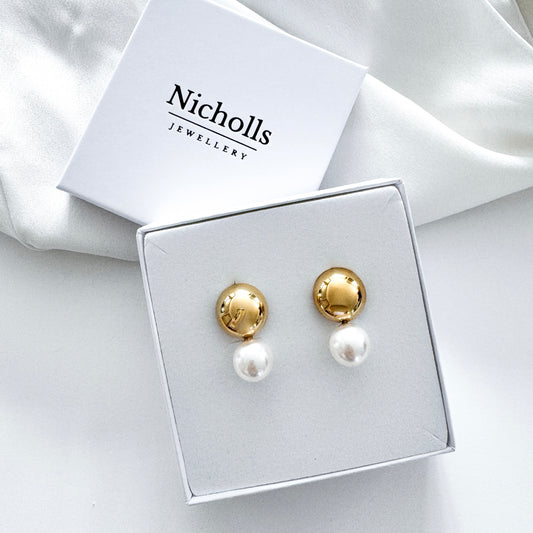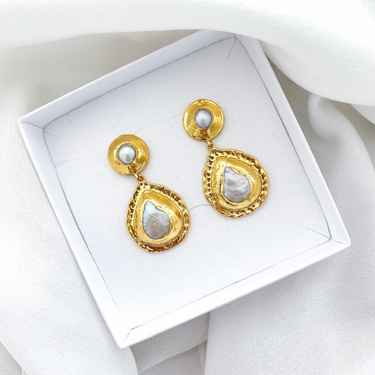 Deluxe Luxury 24k Gold Plated Freshwater Pearl Coin Earrings