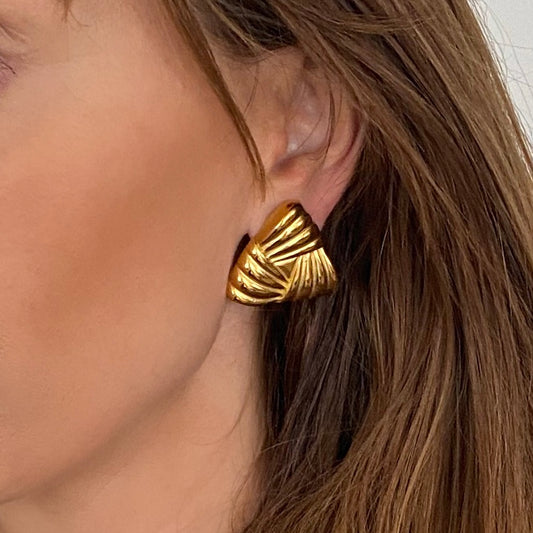 Statement Gold Iris Petal Flower Earrings - Holiday, Christmas & Party Jewellery