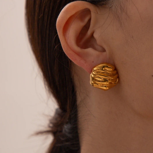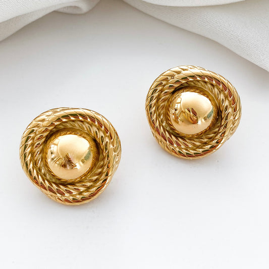 Vintage Textured Gold Stud Earrings
