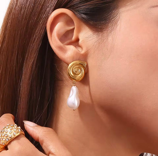 Gold Shell and Baroque Pearl Earrings
