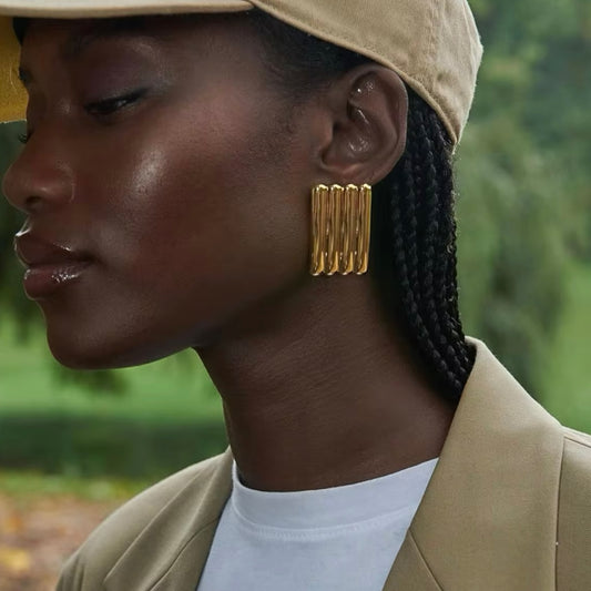 Ridge Rectangle Gold Earrings