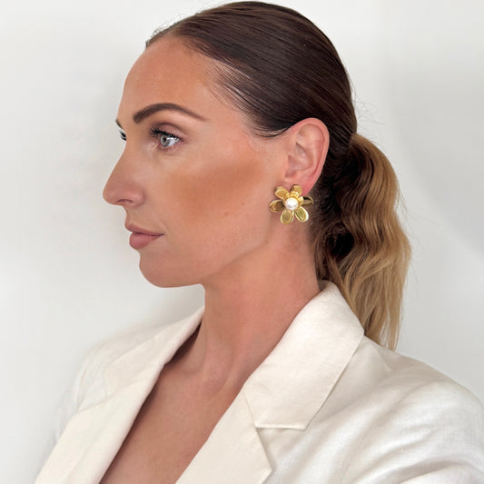 Gold Daisy and Pearl Centre Earrings